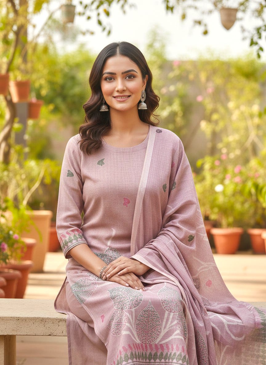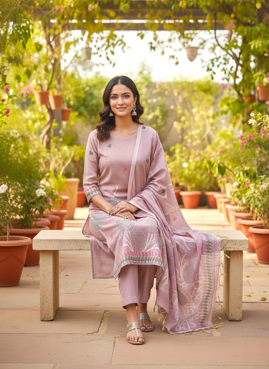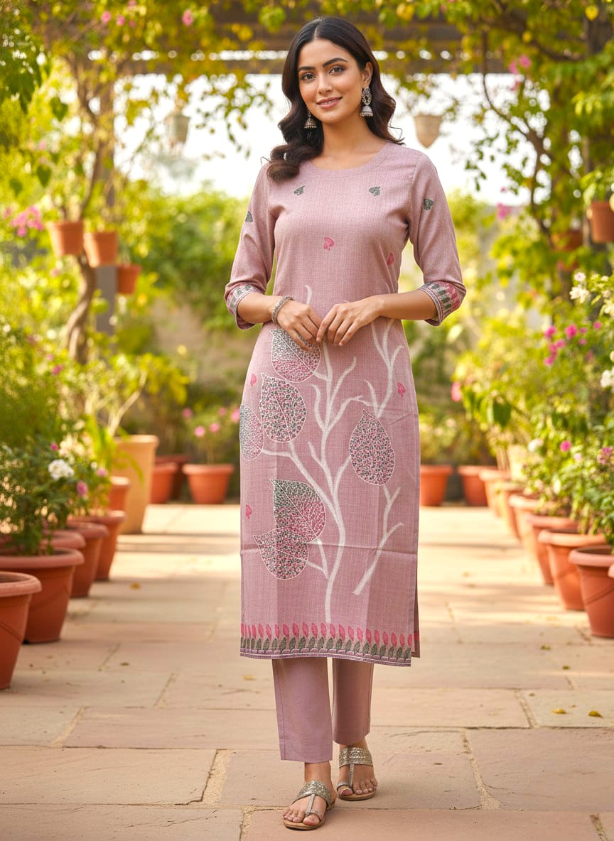 Elevate your everyday elegance with this beautifully crafted dusty rose kurta set in premium linen cotton fabric. Known for its breathable texture and soft natural feel, linen cotton ensures all-day comfort while maintaining a refined structure.