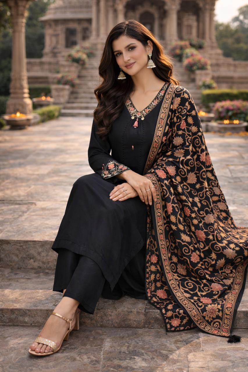 Make a bold yet graceful statement with this stunning black kurta set crafted in premium German rayon fabric. Known for its smooth texture and elegant fall, German rayon ensures all-day comfort with a refined silhouette.