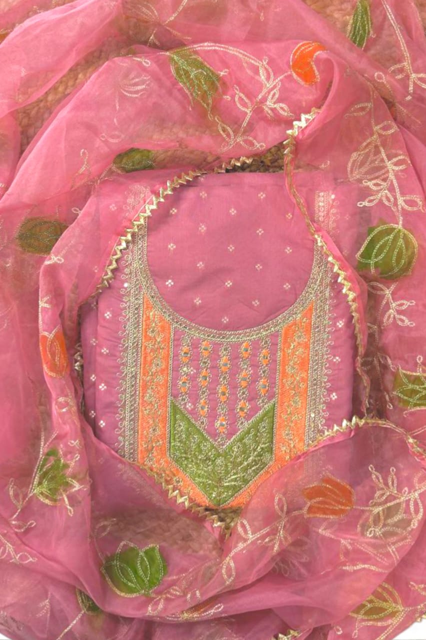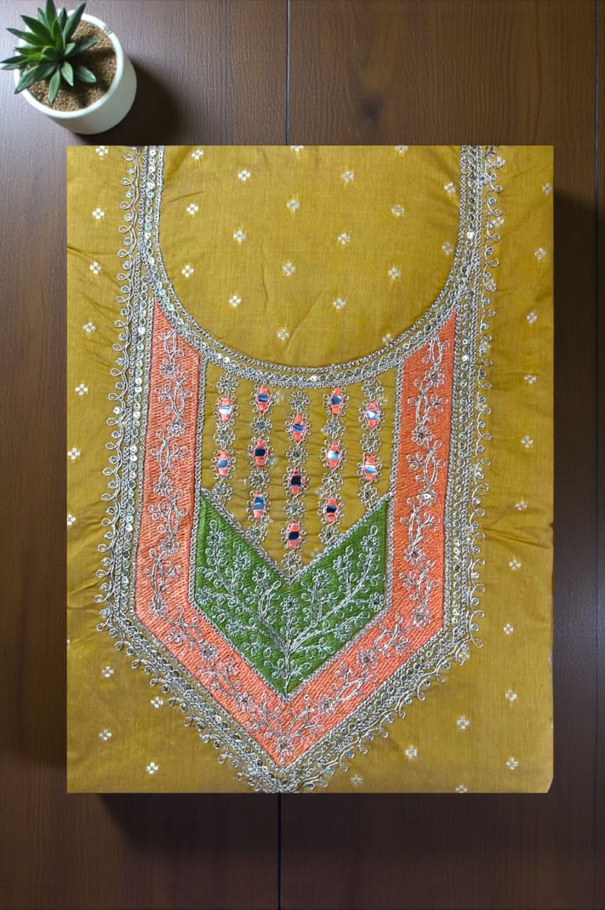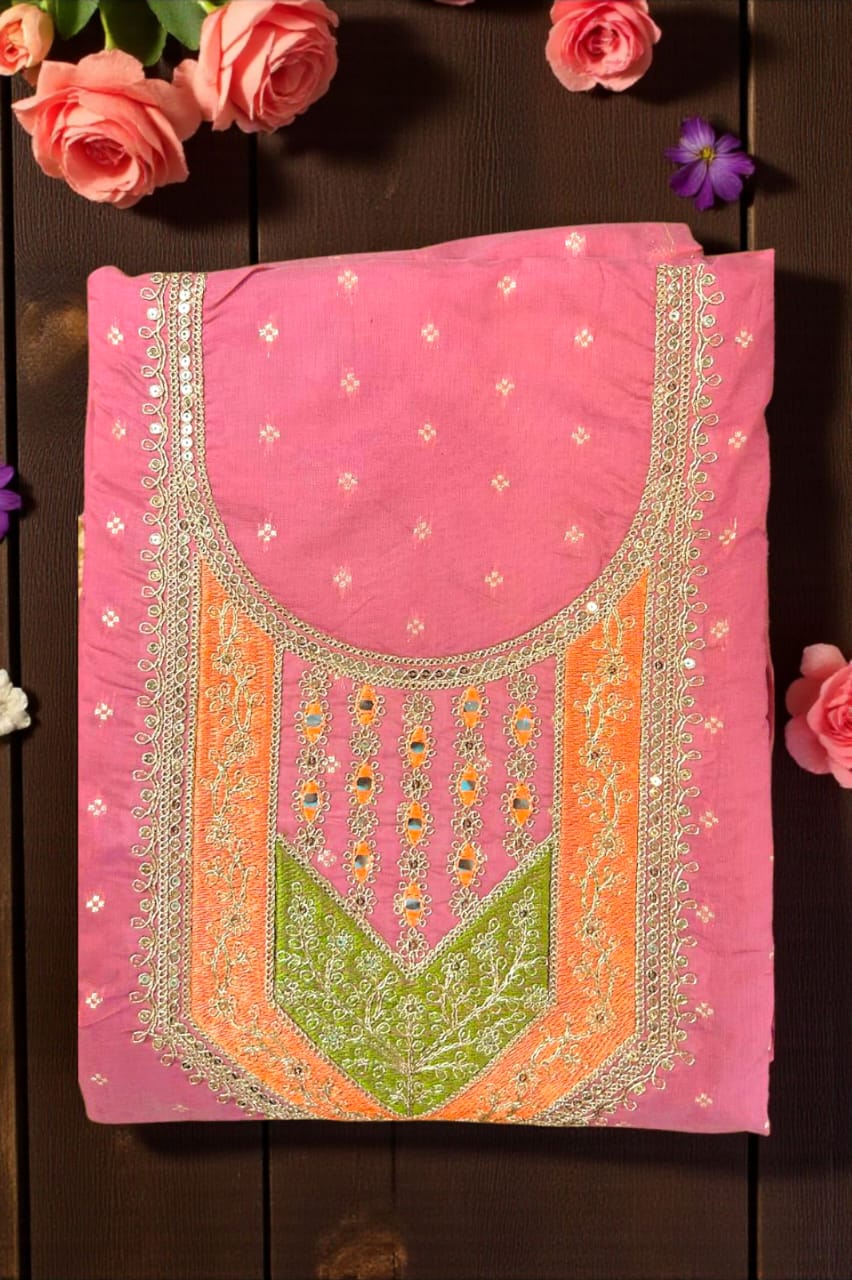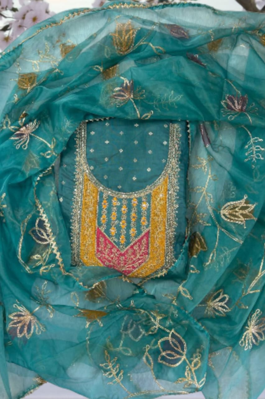 Grace your festive wardrobe with this stunning Chanderi embroidered suit set, designed to exude charm and sophistication. The soft Chanderi kurta features intricate thread and zari embroidery on the neckline with delicate sequin highlights, creating a timeless ethnic appeal.