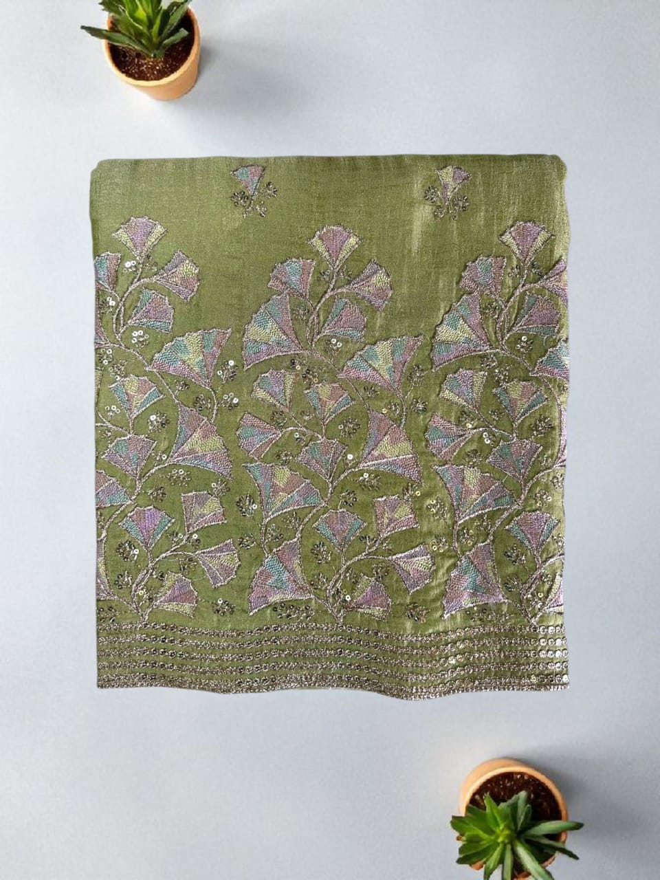 Dupatta: Vichitra with embroidered motifs & embellished border